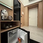 De 8 luftkonditionerade rummen på hotellet Kore Luxury Suite E Spa har ljudisolerade fönster samt kaffemaskin. I de privata badrummen finns också toalettartiklar och badrockar.